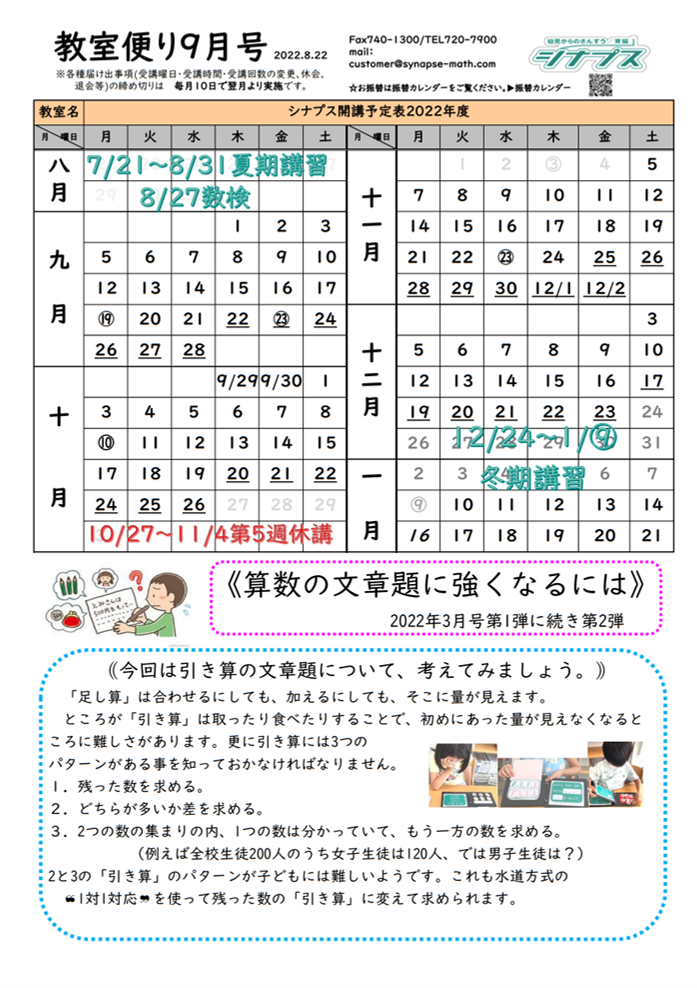 教室便り9月号を拡大して見る、PDFダウンロードはこちらをタップ