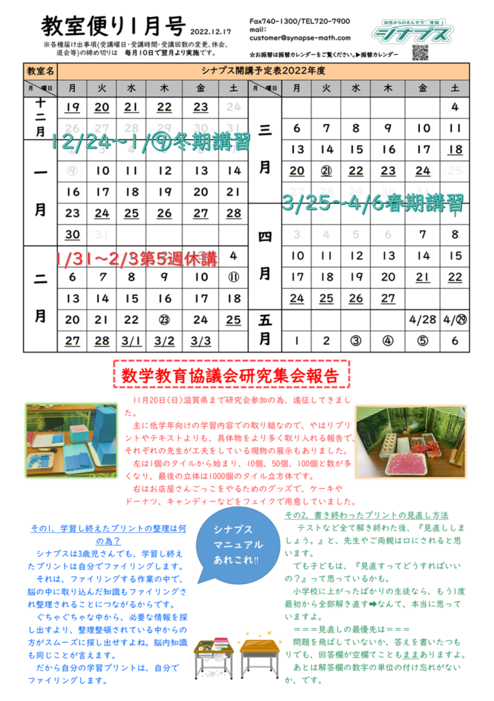 教室便り1月号を拡大して見る、PDFダウンロードはこちらをタップ