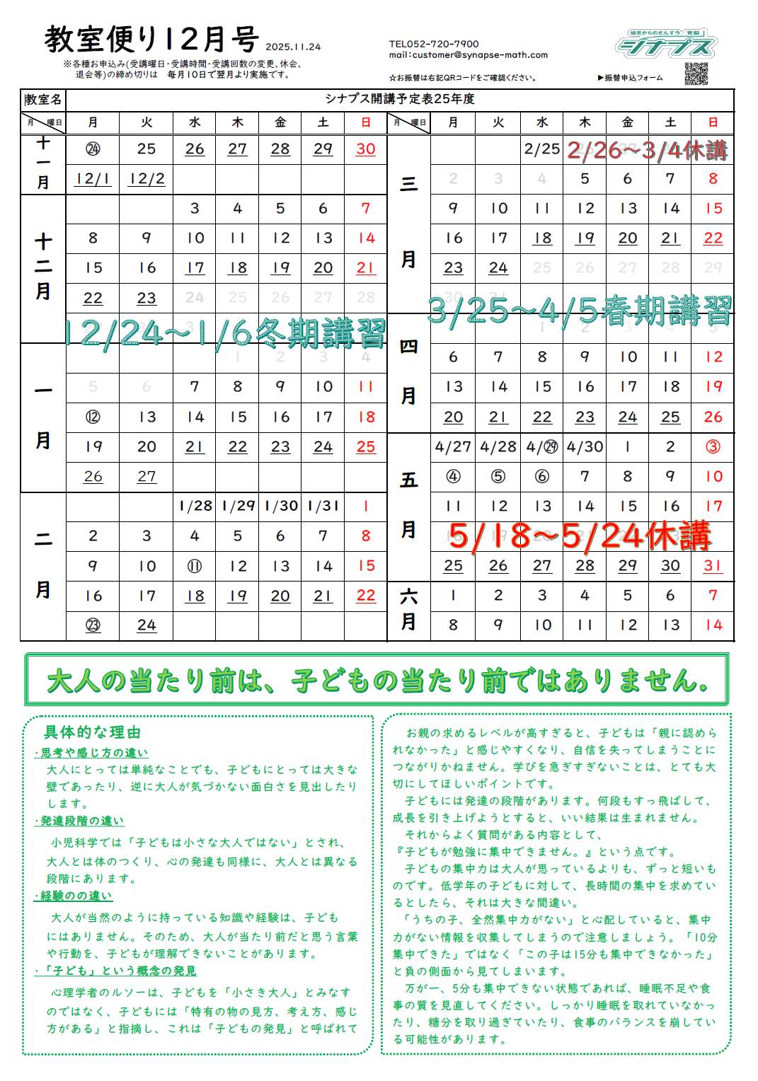 教室便りを拡大して見る、PDFをダウンロードはこちら12月教室便り
