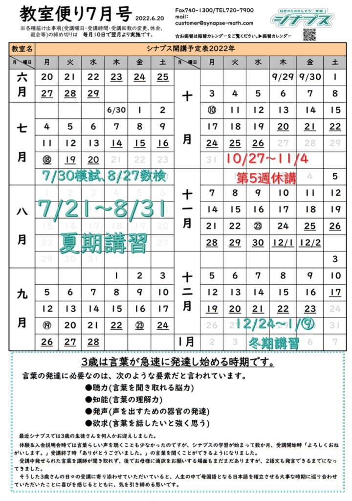 教室便り7月号を拡大して見る、PDFダウンロードはこちらをタップ