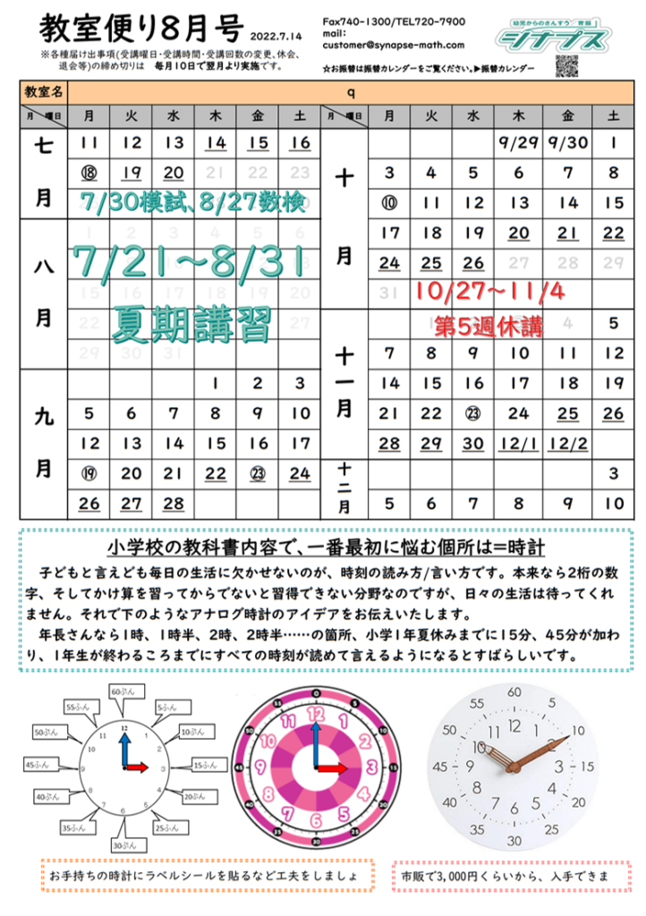 教室便り8月号を拡大して見る、PDFダウンロードはこちらをタップ