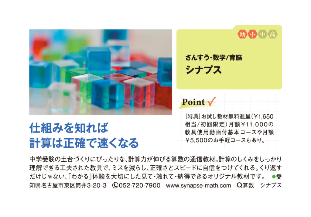 幼児からのさんすう専門塾を開講して30年、延べ2,000人近い子どもたちの教育に携わってきました。その経験と実績から『シナプスメソッド』を立ち上げ、子どもたちに提供しています。そして日々子どもたちに寄り添った教材開発を挑戦し続ける毎日です。